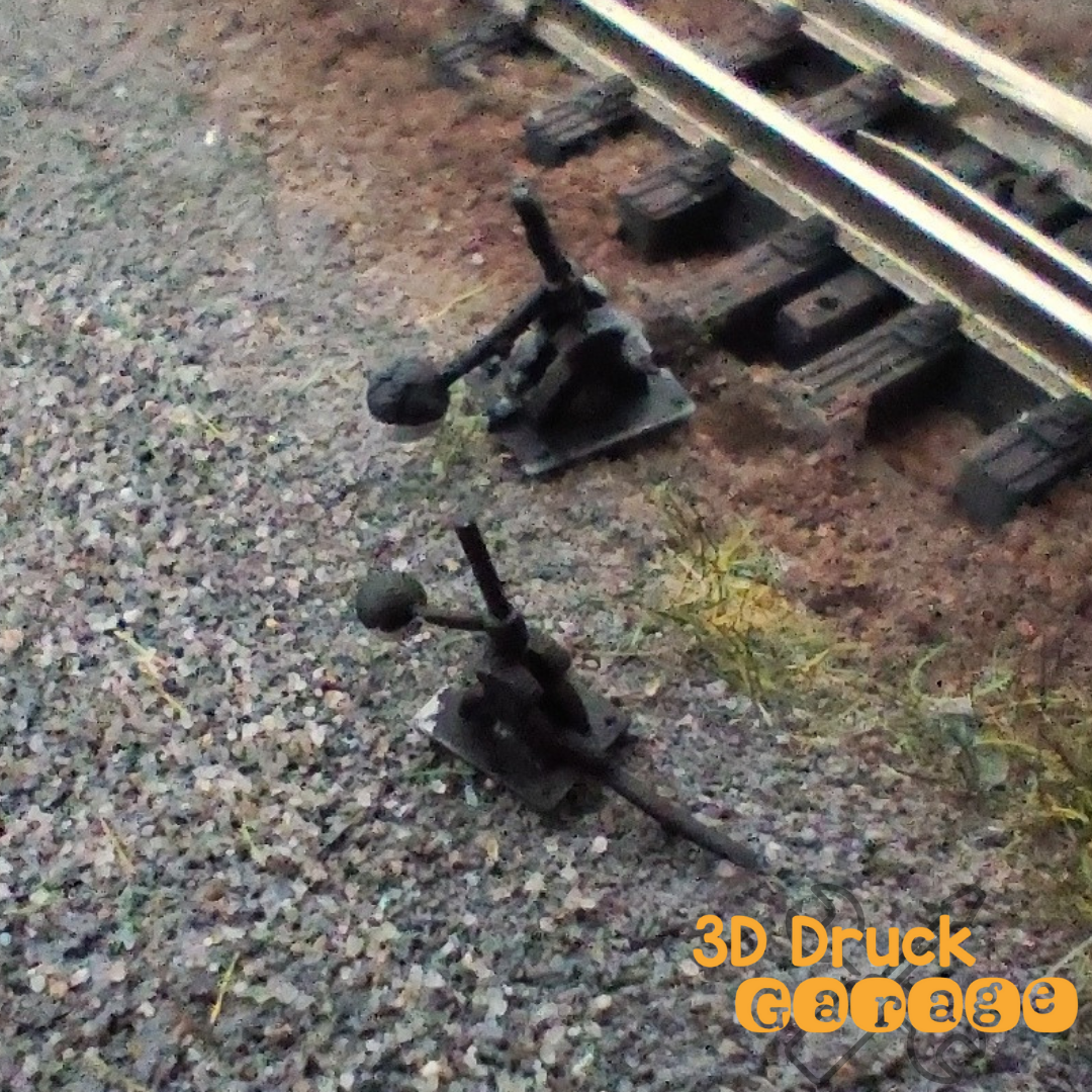 Ein Paar Attrappen vom sächsischen Weichenstellbock.